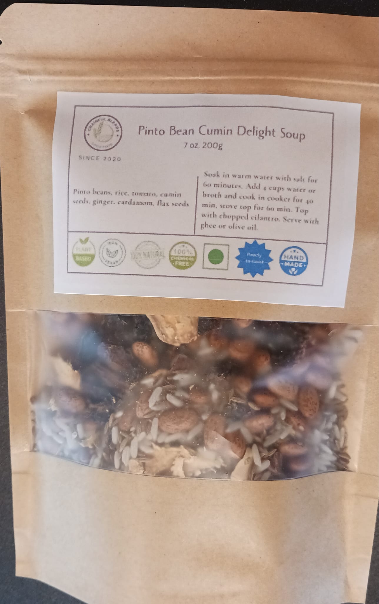 - 1 cup Pinto Bean Cumin Delight Soup mix