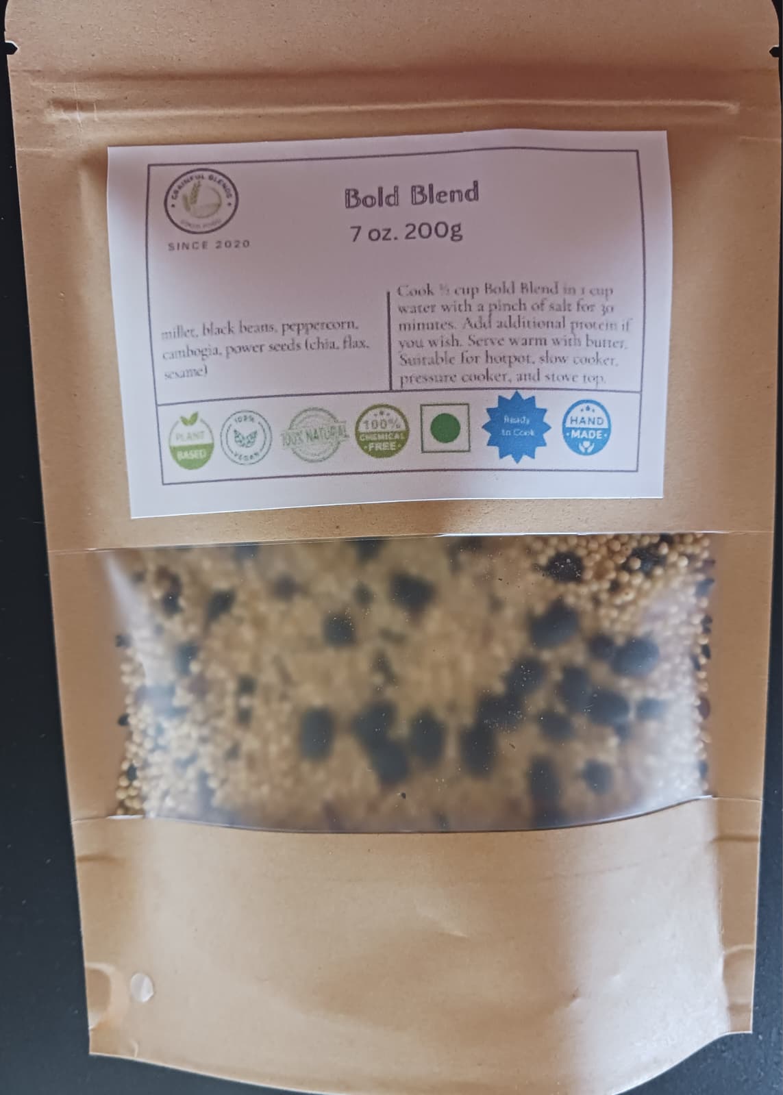Materials: Beans (Black and Pinto), Millet, Rice, Cumin and Power Seeds